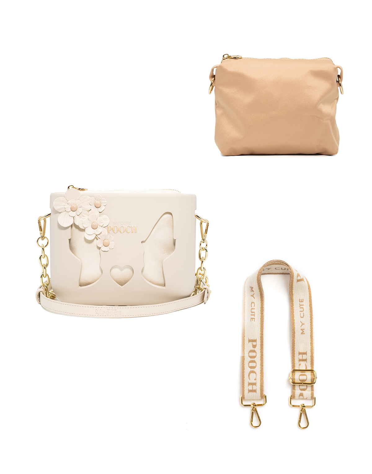 Neste dia tão especial, surpreende a tua mamã com o PACK MOMMY POOCH, feito manualmente com muito amor, elegância, exclusividade e versatilidade. O pack inclui: uma bolsa completa: base na cor cru com flores criadas manualmente, nécessaire de cetim pérola, uma alça mix com ombreira em pele sintética cru e corrente Agnes. A alça é regulável até 1,16 m. Os acessórios extra incluem: nécessaire em cetim camel, alça Maria cru e camel gold em jacquard regulável até 1,40 m. Com a troca dos acessórios, podes criar diferentes combinações. Esta edição é limitada ao Dia da Mãe, é uma oportunidade única para oferecer uma bolsa exclusiva e cheia de significado. Garante já o Pack Mommy Pooch e torna o dia da tua mamã ainda mais feliz. Medidas da bolsa: 20 x 15 x 7 cm.