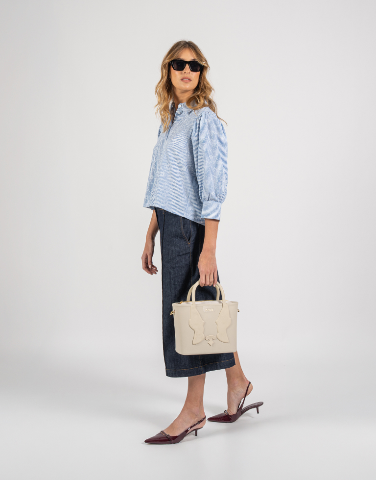 A Lady Pooch é mais do que uma bolsa: é uma obra de arte 100% portuguesa, vegan, reciclável e muito duradoura. Personalizável para refletir quem tu és, transmite afeto e originalidade, adapta-se a todos os estilos e ocasiões e torna-se a companheira perfeita para cada momento da tua vida. A Lady Pooch é produzida em B-Light®, um composto nobre e exclusivo de borracha reciclável e ultraleve. Com toque irresistivelmente suave na cor cru e letras pintadas à mão em dourado. O necessaire tem bolsos internos e o seu exterior é confecionado em tecido linho suave, com fecho dourado personalizado com a marca POOCH. Como assinatura inconfundível da marca, a bolsa traz delicadas orelhinhas monocromáticas cru com o slogan “Always by your side” – (Contigo sempre a meu lado) com alça incluida nas orelhas, um nariz na cor cru.