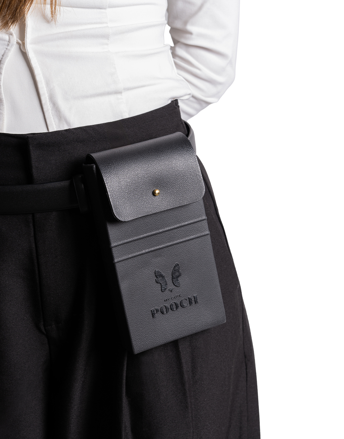 Pooch Pocket Bag com logo em dourado em B-Light® (um composto de borracha perfumado) na cor preta.