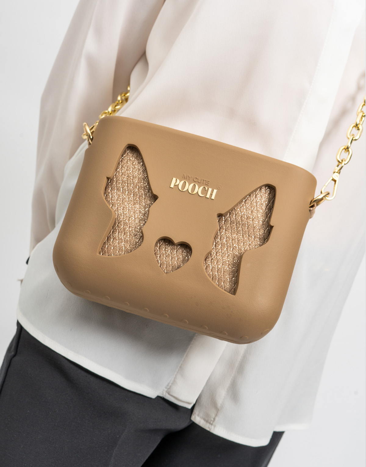 A POOCH é mais do que uma bolsa: é uma obra de arte 100% portuguesa, vegan e reciclável, feita para durar. Personalizável para refletir exatamente quem tu és, este modelo apresenta um recorte frontal em formato das icónicas orelhinhas Pooch e uma textura cuidadosamente trabalhada nos tecidos, que torna cada detalhe especial. Adapta-se a todos os estilos e ocasiões, tornando-se a companheira perfeita para os teus momentos diários. |A Bronze é produzida em B-Light®, um composto de borracha perfumado exclusivo e ultraleve, na elegante cor cru, com letras em dourado pintadas à mão. Com o toque distintivo que só a POOCH oferece, a bolsa apresenta o recorte frontal das icónicas orelhinhas e inclui um nécessaire camel luminoso, com fecho dourado personalizado com a marca POOCH e uma alça Mix Lux em pele sintética macia, com elos em metal e regulável até 1 m. Uma bolsa única que exala elegância e personalidade.