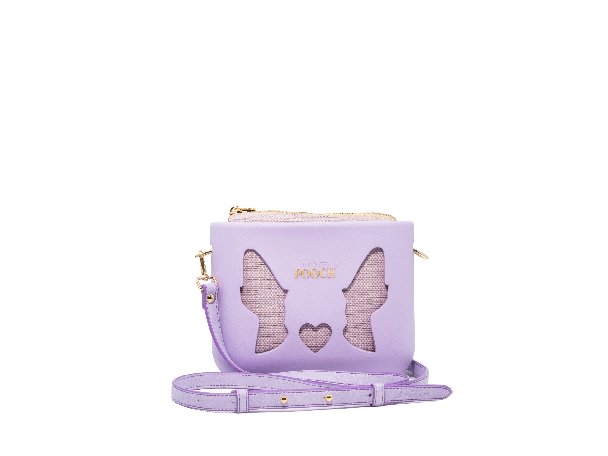 Base cutout em B-Light lavanda, Necessaire ráfia lavanda acessórios em dourado, alça glamour lavanda regulável até 1,16 cm.
